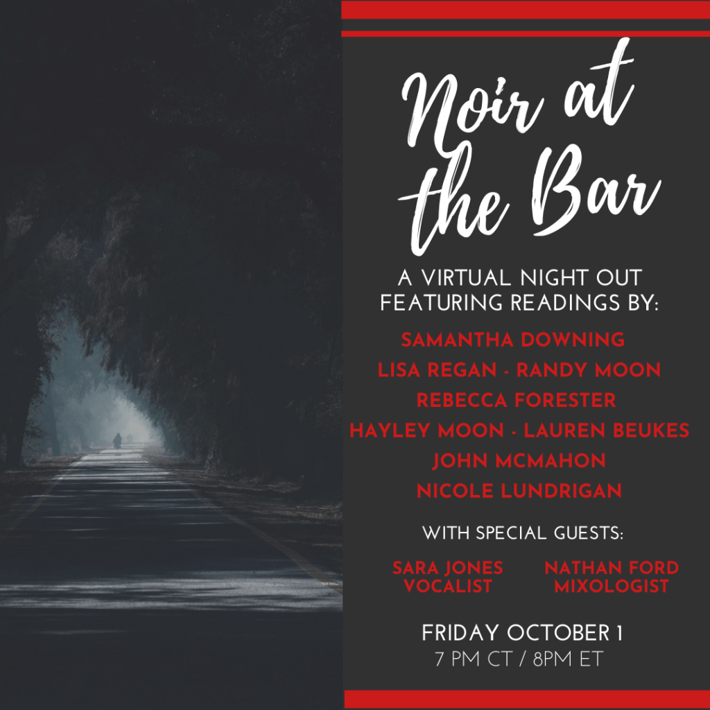 Join me on Friday, October 1st at 7PM CT/8PM ET for a free event with readings by some of your favorite Noir authors, musical performances by award-winning jazz vocalist Sara Jones, and a lesson in crafting the perfect cocktail by Nathan Ford, Chief Bartender at Old Fashioned Events.